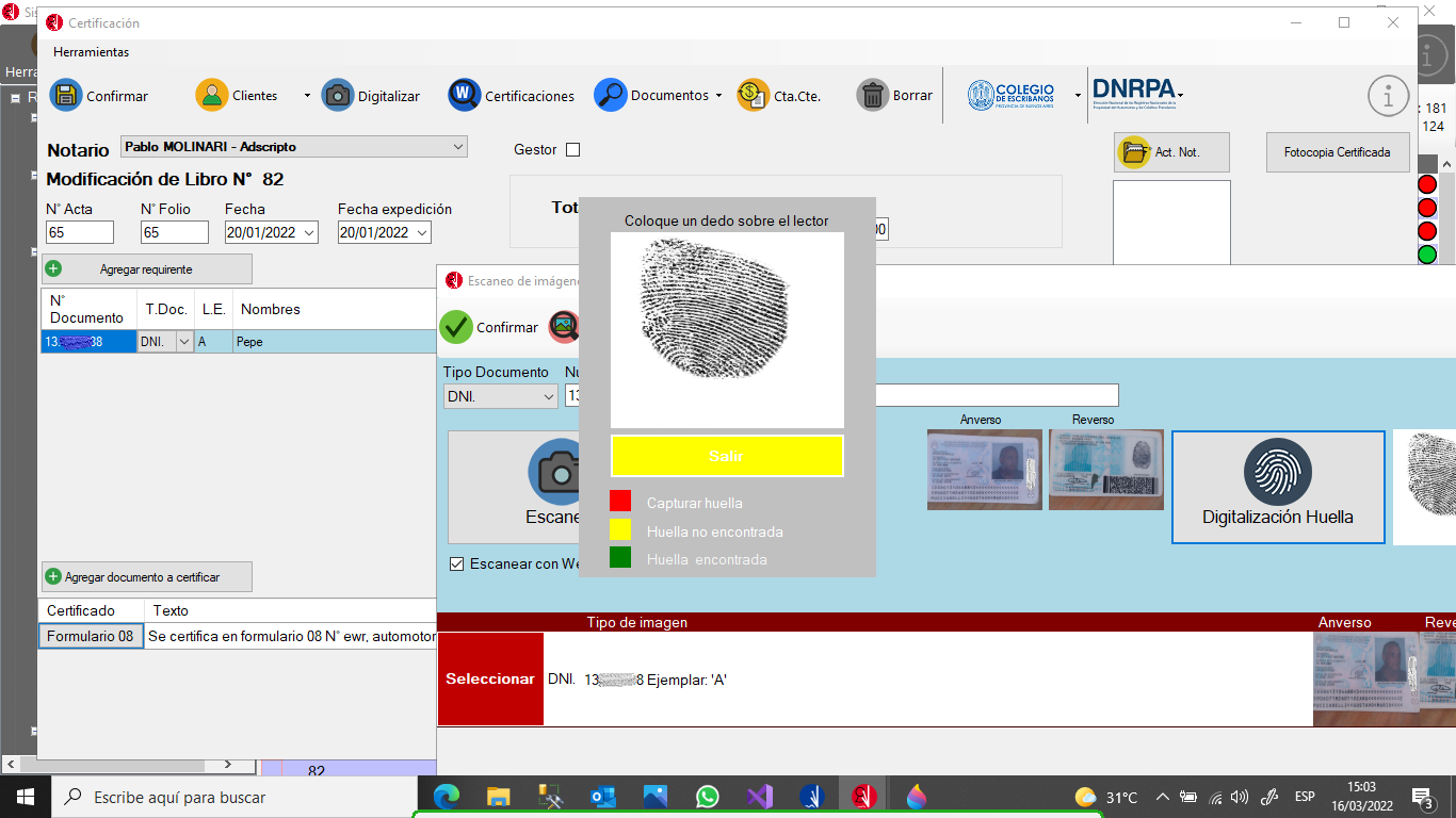 Resguardo en PDF: Imágenes de Documentos, Huella Digital, Lectura de Cod.Barras del Documento y Biometría de Huella.