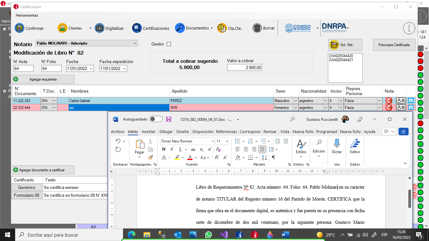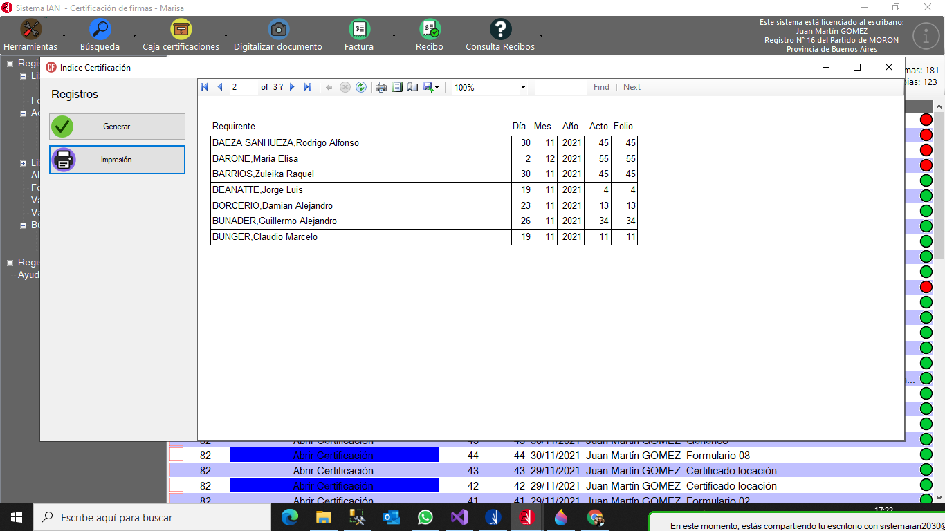 Carga de requirentes y generación de certificado, similar a Certif. de firmas manuales.