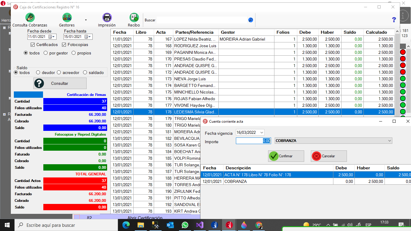 Saldos por tipo de Certificaciones y total General con selección de fechas y saldos deudor, acreedor y saldado.