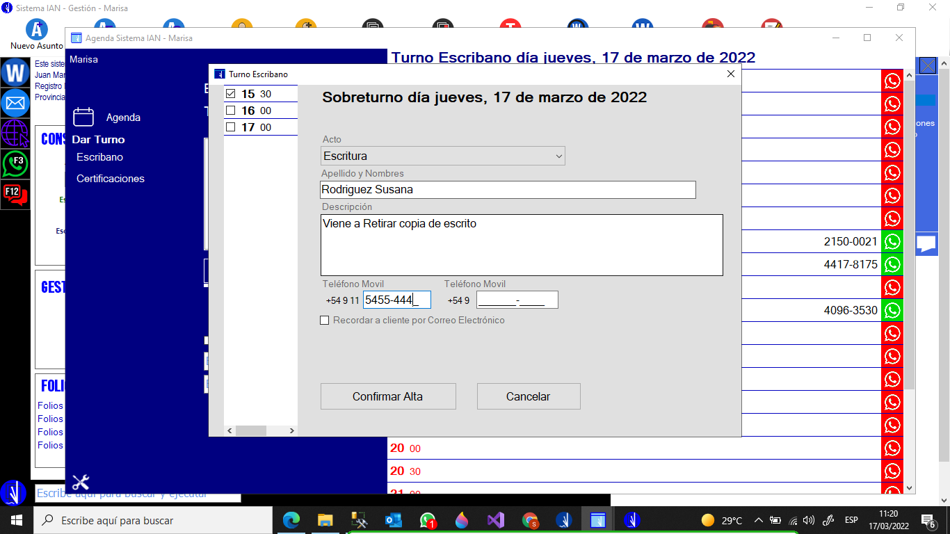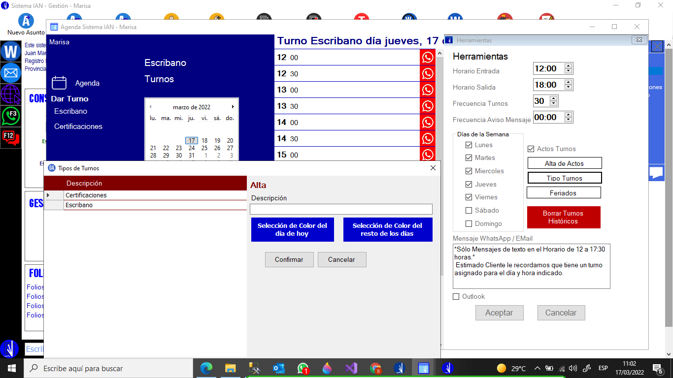 Envío de recordatorio de Turno por Whatsapp o EMail individual o general(Día completo).